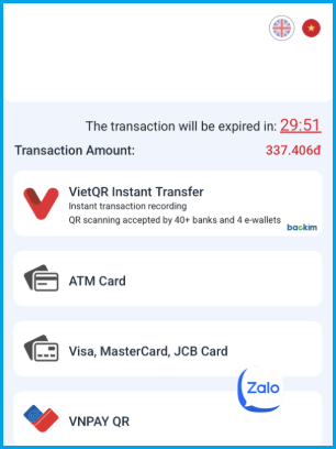 You can make local ewallet payments in Vietnam in Vietnamese dongs (VND).